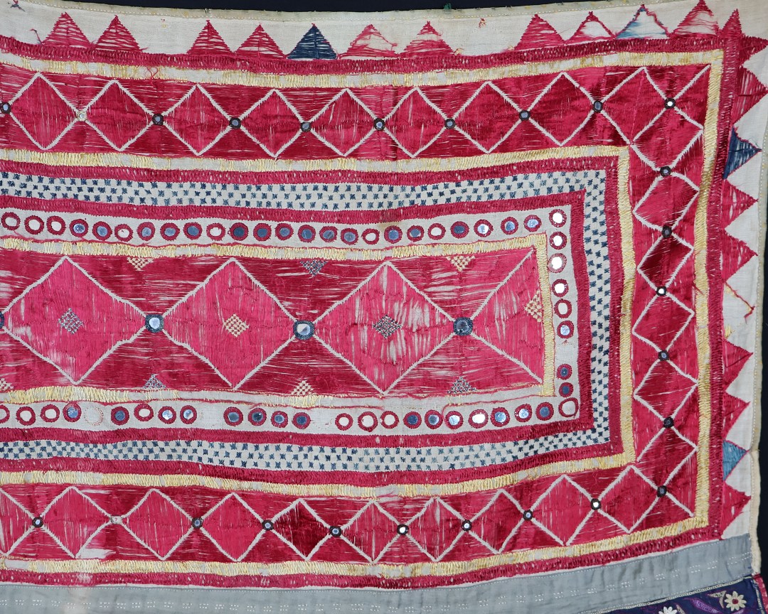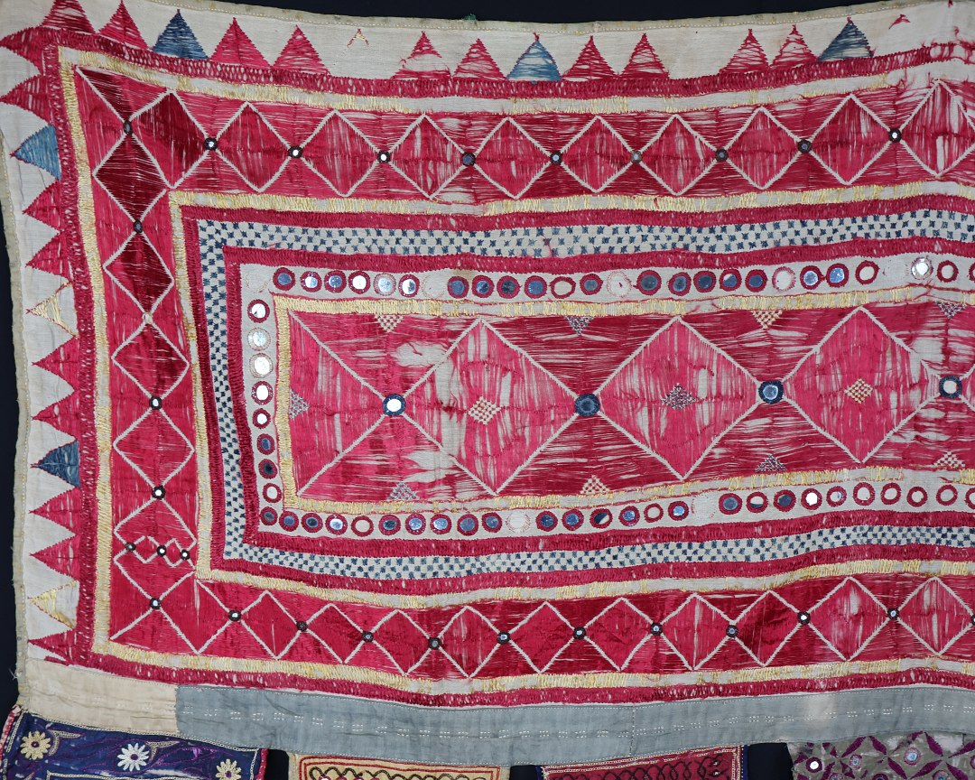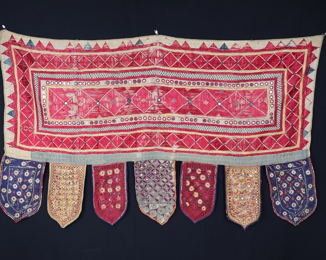 Some torans even echo the same protective logic as Central Asian suzanis or Afghan ceremonial pieces—warding off the evil eye through repetition, mirrors, and bold geometry.